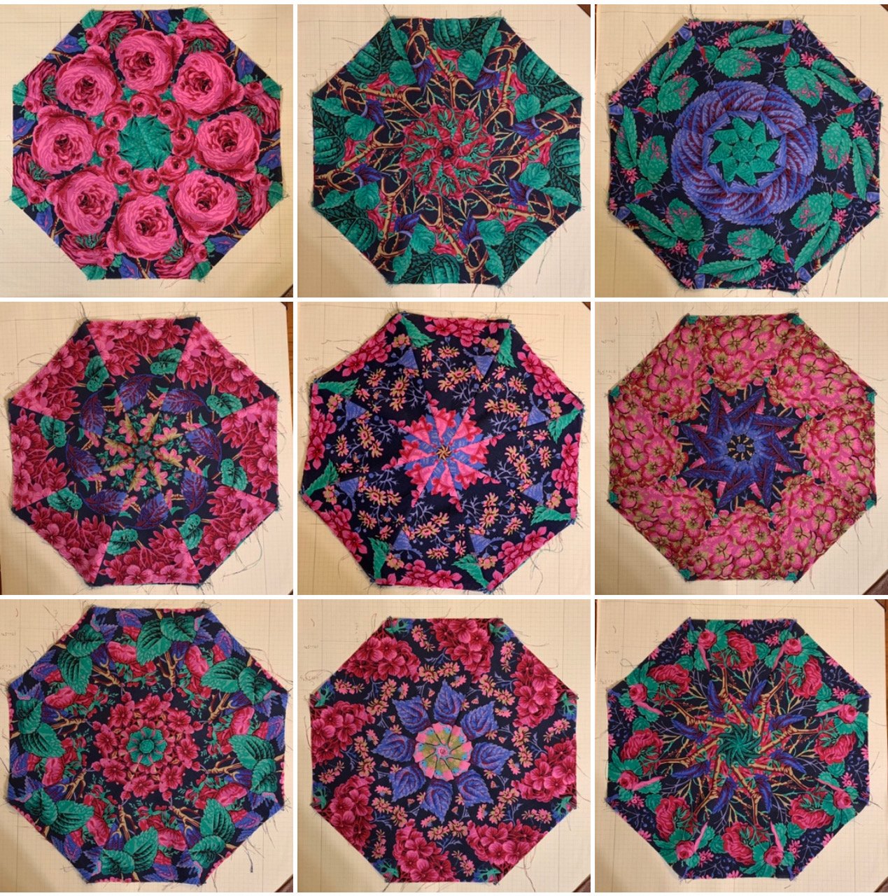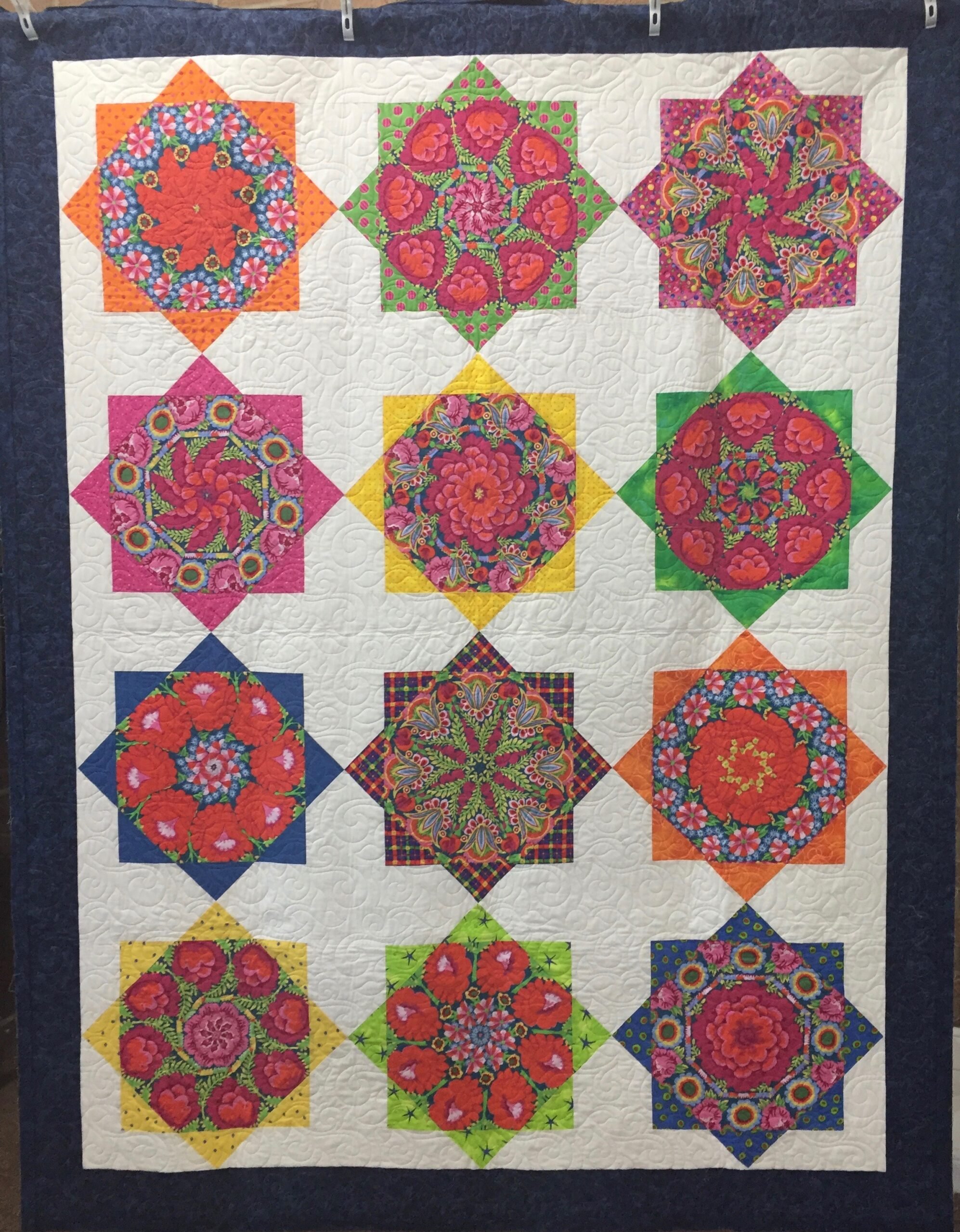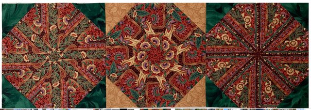 This is the Magic Lantern Quilt. We will make one block in class. The photos below use similar shapes and techniques.